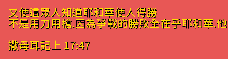 又使這眾人知道耶和華使人得勝、不是用刀用槍.因為爭戰的勝敗全在乎耶和華.他必將你們交在我們手裡。