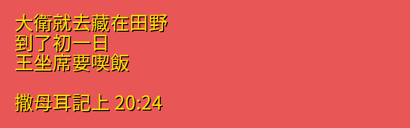 大衛就去藏在田野。到了初一日、王坐席要喫飯。