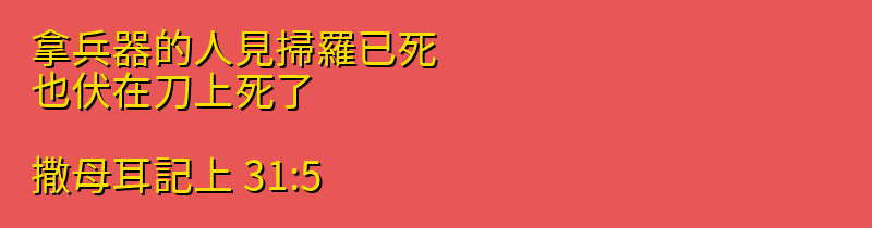 拿兵器的人見掃羅已死、也伏在刀上死了。