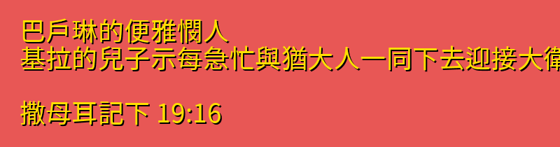 巴戶琳的便雅憫人、基拉的兒子示每急忙與猶大人一同下去迎接大衛王。
