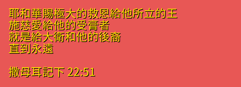 您對於撒母耳記下聖經「耶和華賜極大的救恩給他所立的王、施慈愛給他的受膏者、就是給大衛和他的後裔、直到永遠。」有何comment?