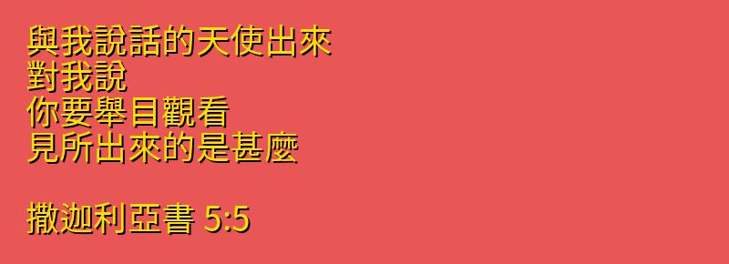 與我說話的天使出來、對我說、你要舉目觀看、見所出來的是甚麼。