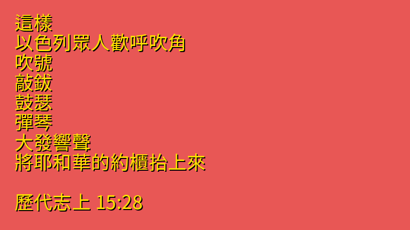 這段經文提醒我們在敬拜神的時候要全心全意地投入,用各種方式表達對神的愛和順服。我們可以透過歌頌、讚美、禱告和愛心行為來敬拜神,同時要尊重神的榮耀和權柄,以合宜的方式來敬拜祂。讓我們效法以色列人的榜樣,盡心盡意地敬拜神,並享受祂的同在和祝福。