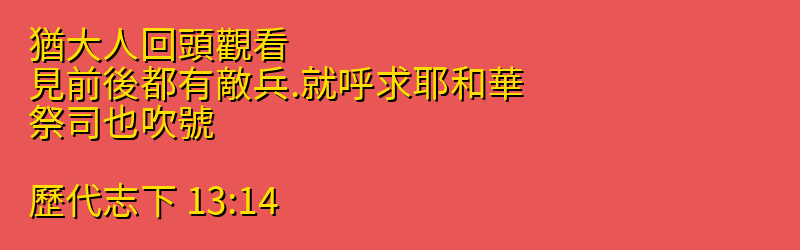 • 13:14 猶大人回頭觀看、見前後都有敵兵.就呼求耶和華、祭司也吹號。