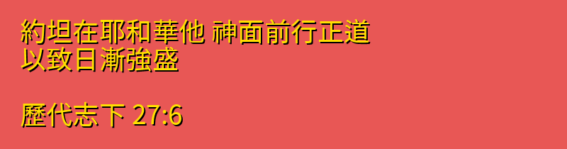 • 27:6 約坦在耶和華他 神面前行正道、以致日漸強盛。