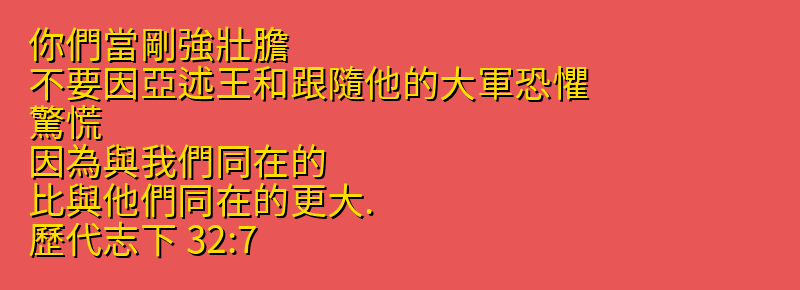 你們當剛強壯膽、不要因亞述王和跟隨他的大軍恐懼、驚慌、因為與我們同在的、比與他們同在的更大.