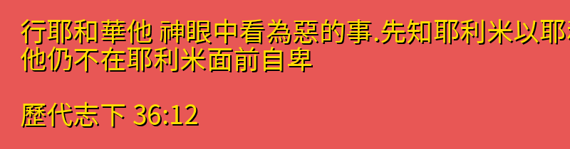 行耶和華他 神眼中看為惡的事.先知耶利米以耶和華的話勸他、他仍不在耶利米面前自卑。