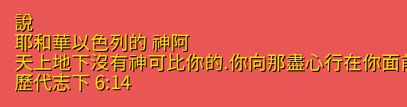 說、耶和華以色列的 神阿、天上地下沒有神可比你的.你向那盡心行在你面前的僕人守約施慈愛.