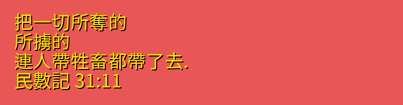 今日分享的中文聖經:「把一切所奪的、所擄的、連人帶牲畜都帶了去.」來自聖經「民數記」第「31章11節」,你可以繼續向下拉看到聖經卷書完整章節。每日中文聖經從神的話語中聆聽神的聲音,引導我們的人生,指導我們人生的方向,讓我們做出正確的選擇,而做出這些正確選擇的原則都在聖經中,所以我們需要讀神的話語,認識他的話語,把神的話語藏在心裡。