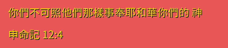 今日分享的中文聖經:「你們不可照他們那樣事奉耶和華你們的 神。」來自聖經「申命記」第「12章4節」,你可以繼續向下拉看到聖經卷書完整章節。每日中文聖經從神的話語中聆聽神的聲音,引導我們的人生,指導我們人生的方向,讓我們做出正確的選擇,而做出這些正確選擇的原則都在聖經中,所以我們需要讀神的話語,認識他的話語,把神的話語藏在心裡。