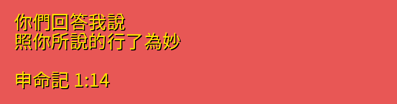 今日分享的中文聖經:「你們回答我說、照你所說的行了為妙。」來自聖經「申命記」第「1章14節」,你可以繼續向下拉看到聖經卷書完整章節。每日中文聖經從神的話語中聆聽神的聲音,引導我們的人生,指導我們人生的方向,讓我們做出正確的選擇,而做出這些正確選擇的原則都在聖經中,所以我們需要讀神的話語,認識他的話語,把神的話語藏在心裡。