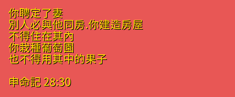 你聘定了妻、別人必與他同房.你建造房屋、不得住在其內、你栽種葡萄園、也不得用其中的果子。
