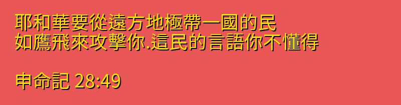 耶和華要從遠方地極帶一國的民、如鷹飛來攻擊你.這民的言語你不懂得。