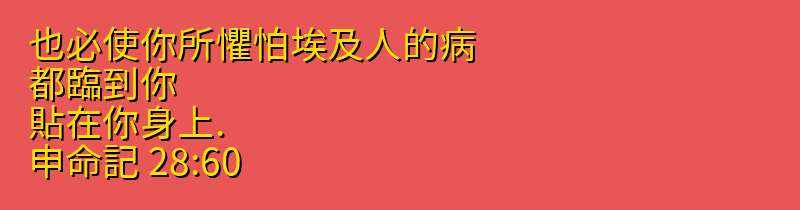 • 28:60 也必使你所懼怕埃及人的病、都臨到你、貼在你身上.