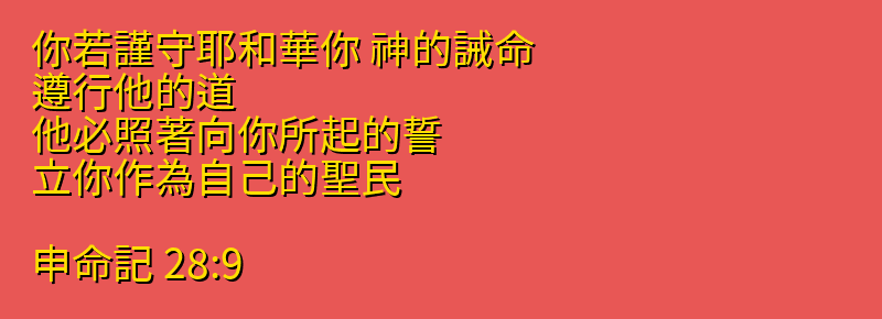你若謹守耶和華你 神的誡命、遵行他的道、他必照著向你所起的誓、立你作為自己的聖民。