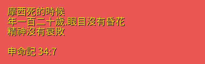 摩西死的時候、年一百二十歲.眼目沒有昏花、精神沒有衰敗。