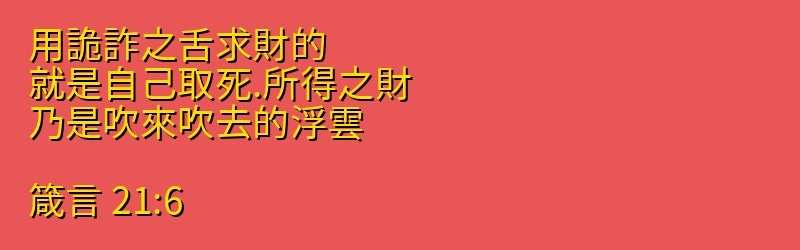用詭詐之舌求財的、就是自己取死.所得之財、乃是吹來吹去的浮雲。