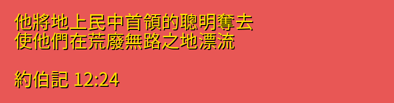 他將地上民中首領的聰明奪去、使他們在荒廢無路之地漂流。
