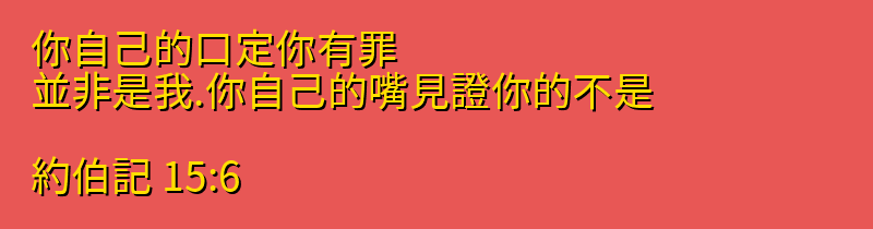你自己的口定你有罪、並非是我.你自己的嘴見證你的不是。