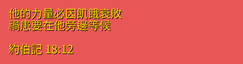 他的力量必因飢餓衰敗、禍患要在他旁邊等候。