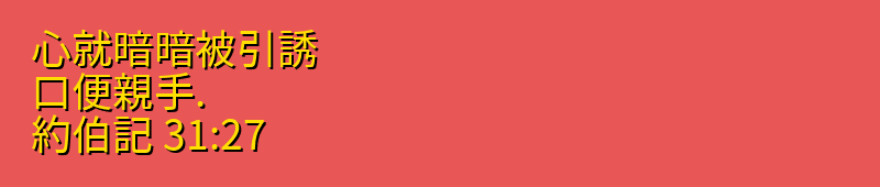 今日分享的中文聖經:「心就暗暗被引誘、口便親手.」來自聖經「約伯記」第「31章27節」,你可以繼續向下拉看到聖經卷書完整章節。每日中文聖經從神的話語中聆聽神的聲音,引導我們的人生,指導我們人生的方向,讓我們做出正確的選擇,而做出這些正確選擇的原則都在聖經中,所以我們需要讀神的話語,認識他的話語,把神的話語藏在心裡。