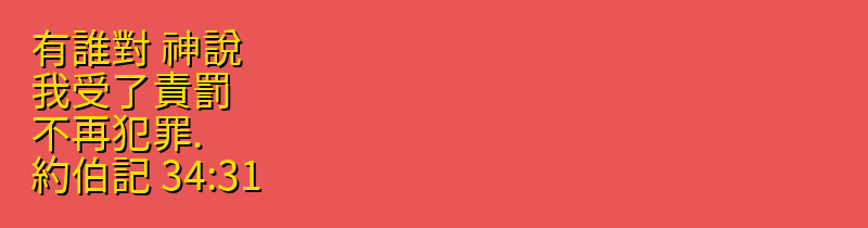 今日分享的中文聖經:「有誰對 神說、我受了責罰、不再犯罪.」來自聖經「約伯記」第「34章31節」,你可以繼續向下拉看到聖經卷書完整章節。每日中文聖經從神的話語中聆聽神的聲音,引導我們的人生,指導我們人生的方向,讓我們做出正確的選擇,而做出這些正確選擇的原則都在聖經中,所以我們需要讀神的話語,認識他的話語,把神的話語藏在心裡。