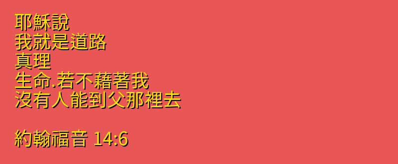 耶穌說、我就是道路、真理、生命.若不藉著我、沒有人能到父那裡去。