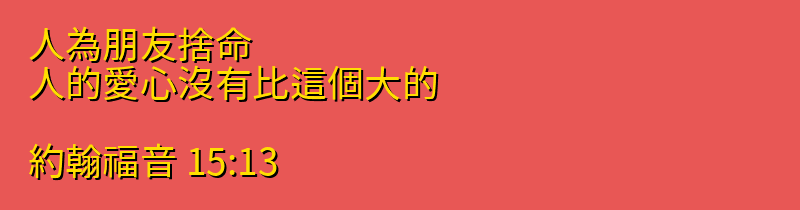 今日分享的中文聖經:「人為朋友捨命、人的愛心沒有比這個大的。」來自聖經「約翰福音」第「15章13節」,你可以繼續向下拉看到聖經卷書完整章節。每日中文聖經從神的話語中聆聽神的聲音,引導我們的人生,指導我們人生的方向,讓我們做出正確的選擇,而做出這些正確選擇的原則都在聖經中,所以我們需要讀神的話語,認識他的話語,把神的話語藏在心裡。
