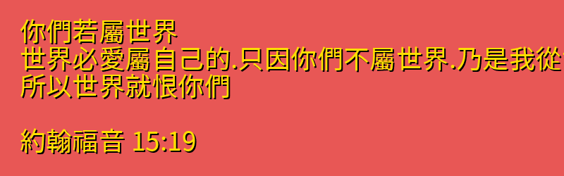 你們若屬世界、世界必愛屬自己的.只因你們不屬世界.乃是我從世界中揀選了你們、所以世界就恨你們。