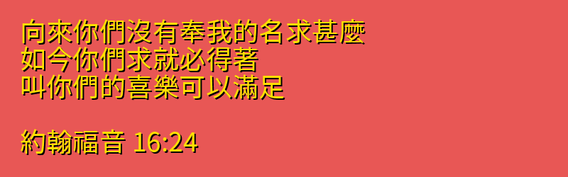 向來你們沒有奉我的名求甚麼、如今你們求就必得著、叫你們的喜樂可以滿足。