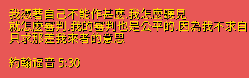 我憑著自己不能作甚麼.我怎麼聽見、就怎麼審判.我的審判也是公平的.因為我不求自己的意思、只求那差我來者的意思。