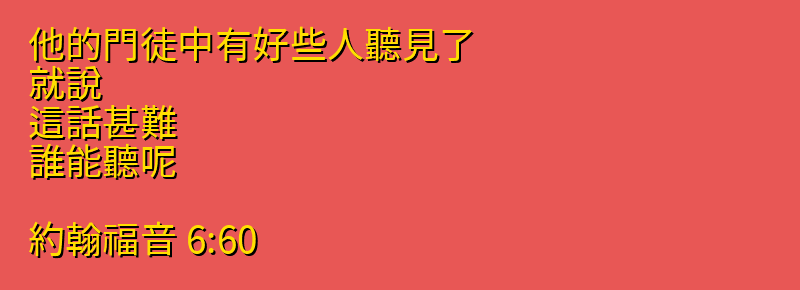 • 6:60 他的門徒中有好些人聽見了、就說、這話甚難、誰能聽呢。