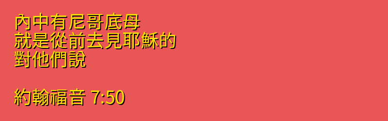 今日分享的中文聖經:「內中有尼哥底母、就是從前去見耶穌的、對他們說、」來自聖經「約翰福音」第「7章50節」,你可以繼續向下拉看到聖經卷書完整章節。每日中文聖經從神的話語中聆聽神的聲音,引導我們的人生,指導我們人生的方向,讓我們做出正確的選擇,而做出這些正確選擇的原則都在聖經中,所以我們需要讀神的話語,認識他的話語,把神的話語藏在心裡。