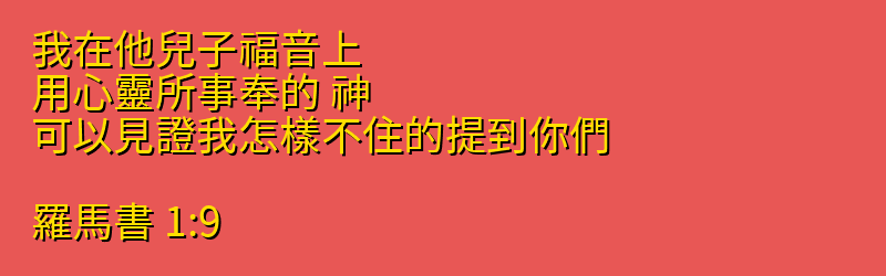我在他兒子福音上、用心靈所事奉的 神、可以見證我怎樣不住的提到你們、