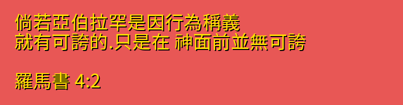 倘若亞伯拉罕是因行為稱義、就有可誇的.只是在 神面前並無可誇。