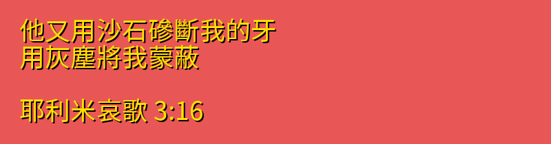 他又用沙石磣斷我的牙、用灰塵將我蒙蔽。