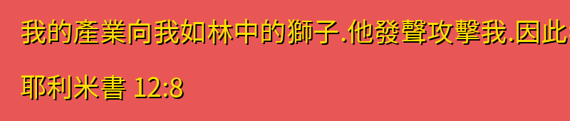 我的產業向我如林中的獅子.他發聲攻擊我.因此我恨惡他。