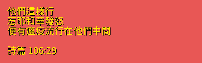 今日分享的中文聖經:「他們這樣行、惹耶和華發怒、便有瘟疫流行在他們中間。」來自聖經「詩篇」第「106章29節」,你可以繼續向下拉看到聖經卷書完整章節。每日中文聖經從神的話語中聆聽神的聲音,引導我們的人生,指導我們人生的方向,讓我們做出正確的選擇,而做出這些正確選擇的原則都在聖經中,所以我們需要讀神的話語,認識他的話語,把神的話語藏在心裡。