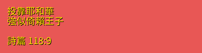 今日分享的中文聖經:「投靠耶和華、強似倚賴王子。」來自聖經「詩篇」第「118章9節」,你可以繼續向下拉看到聖經卷書完整章節。每日中文聖經從神的話語中聆聽神的聲音,引導我們的人生,指導我們人生的方向,讓我們做出正確的選擇,而做出這些正確選擇的原則都在聖經中,所以我們需要讀神的話語,認識他的話語,把神的話語藏在心裡。