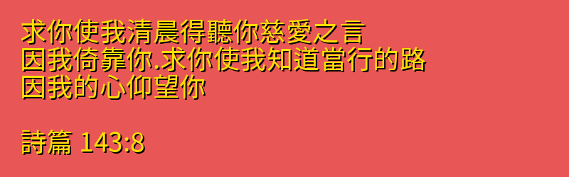 求你使我清晨得聽你慈愛之言、因我倚靠你.求你使我知道當行的路、因我的心仰望你。