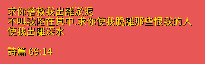 求你搭救我出離淤泥、不叫我陷在其中.求你使我脫離那些恨我的人、使我出離深水。