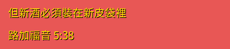我們應該不斷地學習和成長,勇於接受新的挑戰和改變,不要讓自己被固有的觀念所束縛,才能真正擁抱新的機會和可能性,讓自己得到豐盛的生命。這段經文提醒著我們保持靈活、包容的態度,不斷地更新自己,讓新的事物能夠在我們的生命中生根發芽。