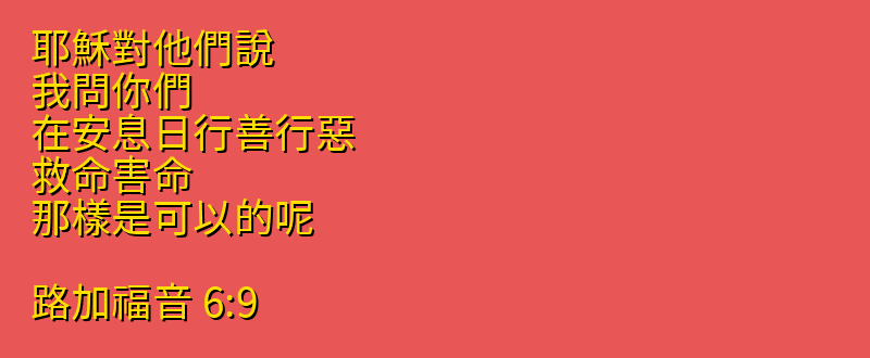 耶穌對他們說、我問你們、在安息日行善行惡、救命害命、那樣是可以的呢。