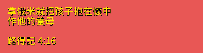 • 4:16 拿俄米就把孩子抱在懷中、作他的養母。