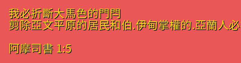 我必折斷大馬色的門閂、剪除亞文平原的居民和伯.伊甸掌權的.亞蘭人必被擄到吉珥.這是耶和華說的。