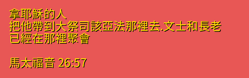 拿耶穌的人、把他帶到大祭司該亞法那裡去.文士和長老、已經在那裡聚會。
